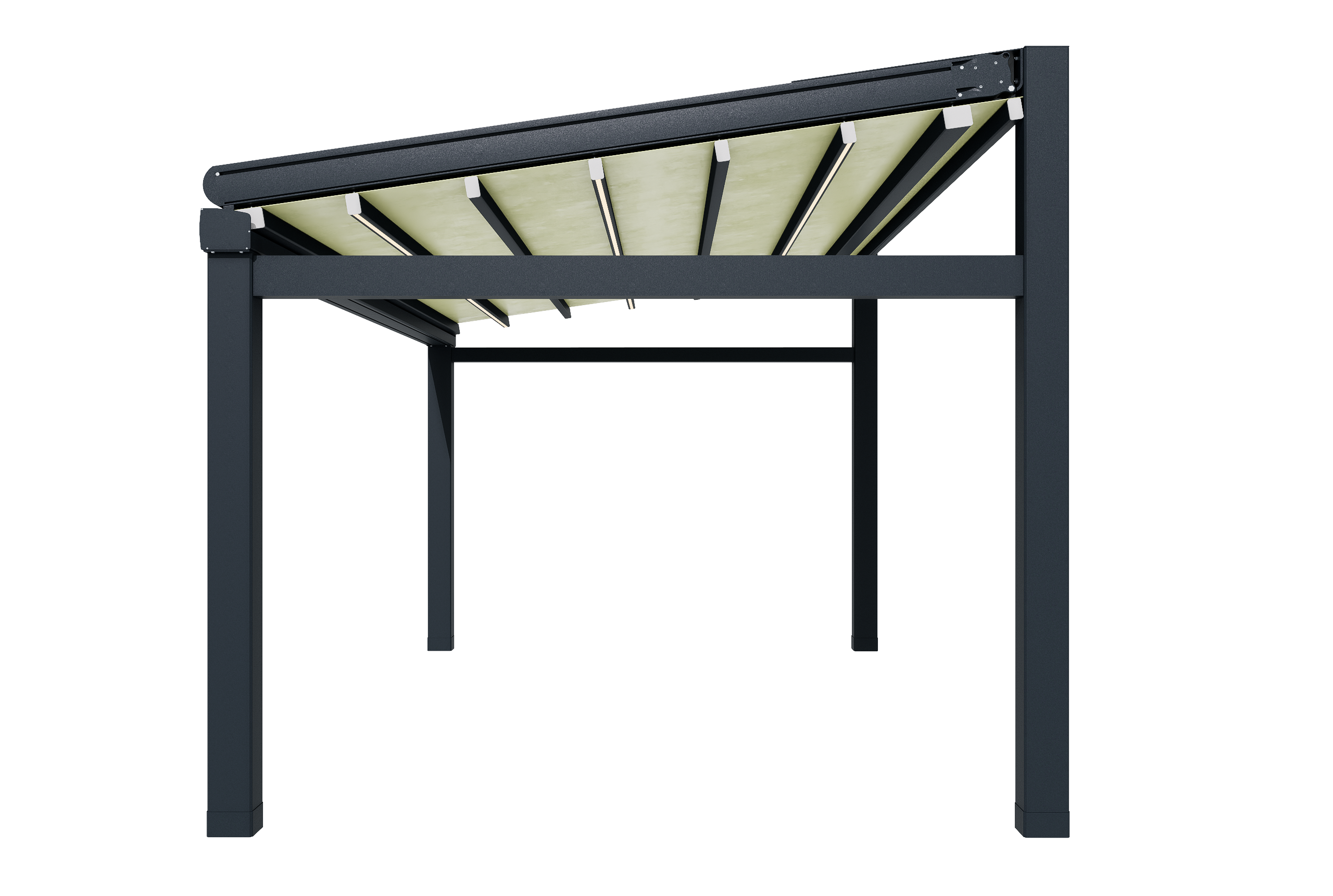 折叠天幕是一种新型的户外空间拓展方案。特制幕布通过电机带动皮带在铝合金轨道内运动,从而实现幕布的开合,让用户自由地享受户外空间的乐趣,同时提供遮阳挡雨的功能...
